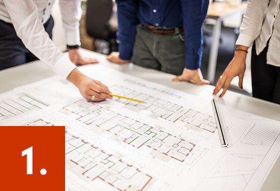 Unser kompetentes und erfahrenes Team steht Ihnen in allen Fragen von der Vorplanung bis zur finalen Umsetzung Ihres Bauvorhabens zur Verfügung.